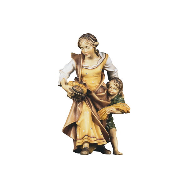 Die Grödner Holzschnitzerei Hirtin mit Kind Hirtenkrippe wird nach dem Entwurf eines Bildhauers mit viel Liebe und hohem holzschnitzerei handwerklichen Anteil gefertigt, wodurch jede holzgeschnitzte Figur ein geschnitztes Unikat ist. Durch die Handbemalung der geschnitzten Holzfigur können geringfügige Abweichungen zur Abbildung vorliegen.