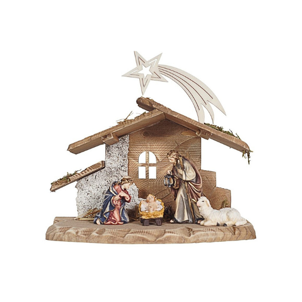 The Grödner wood carvings Rainell Krippenset 5 partially in a small stable is made with a lot of love and high wood carvings according to the design of a sculptor, which means that every wood carved figure is a carved unique piece. By handling the carved wooden figure, slight deviations for the illustration may be available.