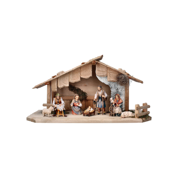 Die Grödner Holzschnitzerei Krippenset 9 teilig Hirtenkrippe wird nach dem Entwurf eines Bildhauers mit viel Liebe und hohem holzschnitzerei handwerklichen Anteil gefertigt, wodurch jede holzgeschnitzte Figur ein geschnitztes Unikat ist. Durch die Handbemalung der geschnitzten Holzfigur können geringfügige Abweichungen zur Abbildung vorliegen.