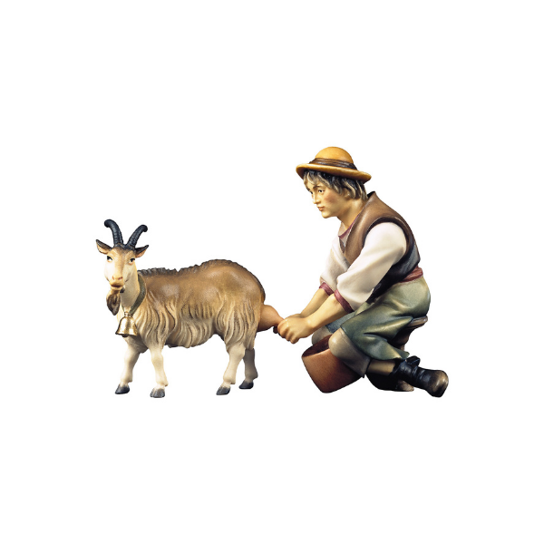 Die Grödner Holzschnitzerei Melkender Hirt mit Ziege Hirtenkrippe wird nach dem Entwurf eines Bildhauers mit viel Liebe und hohem holzschnitzerei handwerklichen Anteil gefertigt, wodurch jede holzgeschnitzte Figur ein geschnitztes Unikat ist. Durch die Handbemalung der geschnitzten Holzfigur können geringfügige Abweichungen zur Abbildung vorliegen.