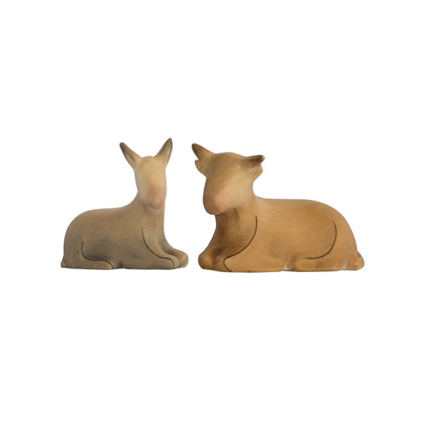 Die Grödner Holzschnitzerei Ochs und Esel Aram wird nach dem Entwurf eines Bildhauers mit viel Liebe und hohem holzschnitzer handwerklichem Anteil gefertigt, wodurch jede holzgeschnitzte Figur ein geschnitztes Unikat ist. Durch die Handbemalung der geschnitzten Holzfigur können geringfügige Abweichungen zur Abbildung vorliegen.