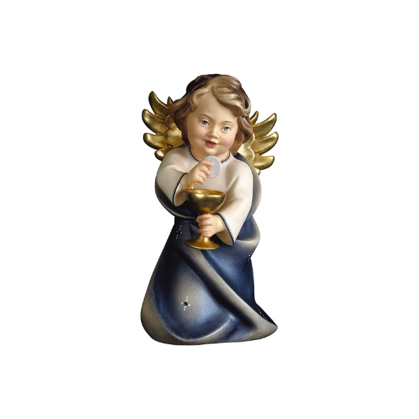 Die Grödner Holzschnitzerei Standengel mit Hostie wird nach dem Entwurf eines Bildhauers mit viel Liebe und hohem holzschnitzer handwerklichem Anteil gefertigt, wodurch jede holzgeschnitzte Figur ein geschnitztes Unikat ist. Durch die Handbemalung der geschnitzten Holzfigur können geringfügige Abweichungen zur Abbildung vorliegen.